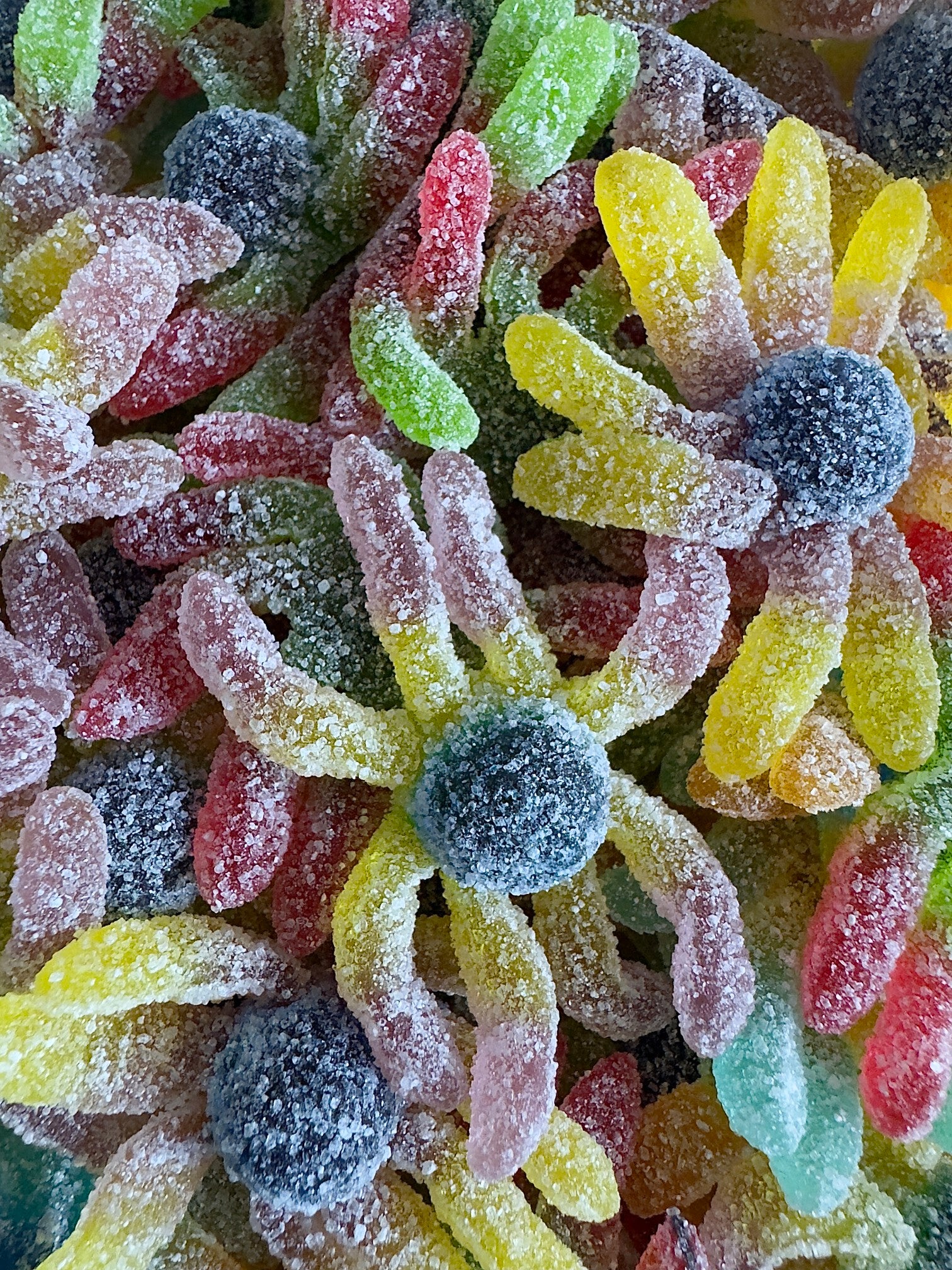 Des poulpes gélifiés colorés, enrobés de sucre candie, pour un plaisir pétillant et délicieusement gourmand.